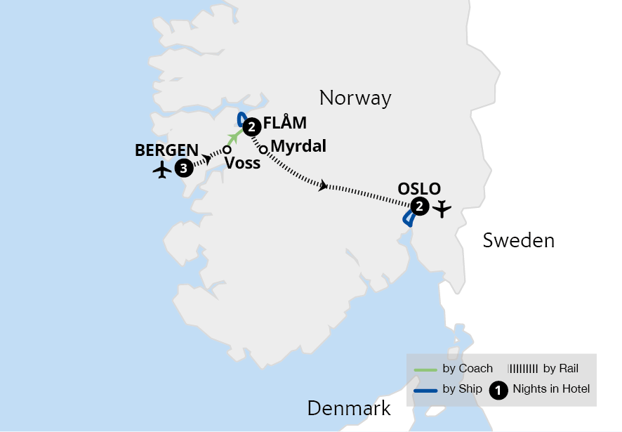 Join us on a summertime journey across the length of Norway - from Oslo to the Arctic Circle. Travel on four of the country's world-renowned rail routes, the Flåm, Bergen, Nordland and Rauma railways and cruise across the Geirangerfjord, discovering otherworldly landscapes. On this top-rated tour of Norway's beautiful cities and the arctic north,...