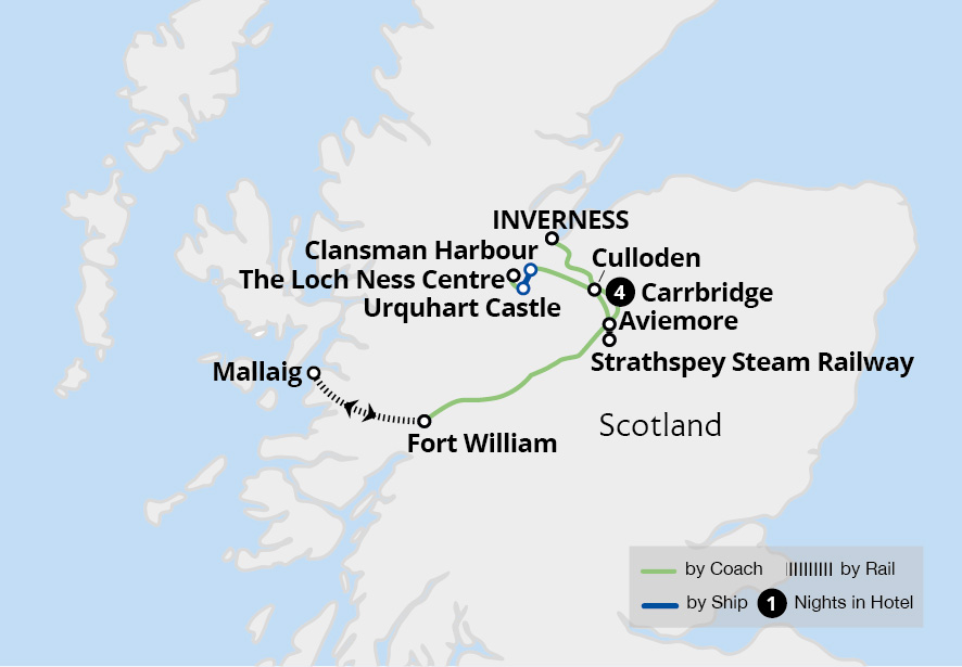 • Spend 8 nights in 3 and 4-Star hotels in Edinburgh and the Highlands