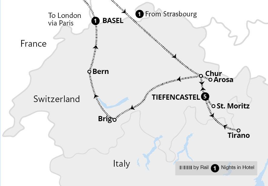 Experience epic mountain landscapes and shimmering alpine lakes on this fantastic holiday to Switzerland. Discover the Swiss Alps on the world-acclaimed Bernina Express and Glacier Express from our popular bases in Chur and Brig, traditional towns surrounded by snow-capped peaks. Enjoy a private aperitif on the terrace of the 10th-century Spiez...