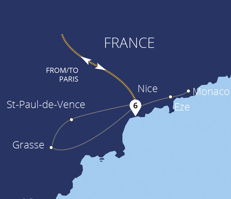 This afternoon you are free to explore this artistic city at your own pace. The Musée National Marc Chagall honours the Belarussian-born French artist and pioneer of modernism, while the Matisse Museum in Cimiez, contains Fauvist works by Henri Matisse, who spent many years in Nice.