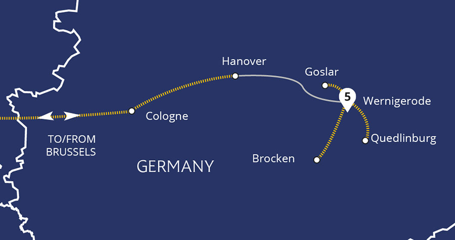 Join us on a magical winter journey amongst the scenic valleys and mountain peaks of Germany's Harz Mountains. Travel on two heritage steam trains, including the Brocken Railway, and discover World Heritage towns with medieval architecture and cobbled lanes. Our base is Wernigerode, a town with timber-framed buildings and a fairytale castle,...